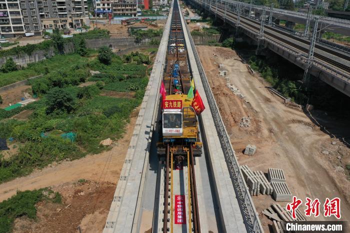 9月10日电 10日上午11时58分,在江西九江庐山站北侧,随着最后一对500米长的轨道在无砟道床上成功铺设,标志着安九高铁正线全线贯通,为年底全线开通运营条件奠定了坚实基础。