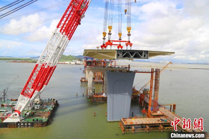 “钢梁在工厂制造,具有大型化、工程化、标准化、设备化的特点,可以保证制造质量,缩短工期。整个吊装也可以减少现场焊接和螺栓连接的工作量。同时克服了钢梁运输过程中距离远、台风频繁、天气变化快等困难。船舶定位、吊索安装、吊装拖航、锚泊就位等工序长达36小时,海事部门需配合封航;受潮汐影响,低潮时钢梁难以吊装,涨潮时难以穿越中海油管道。”。中铁五局珠海市城际金海大桥项目经理陈说。