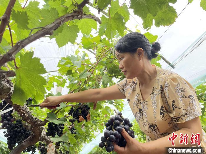 为了克服这个问题,龙伦琼夫妇完善了“软硬件”,牵头成立了顺河葡萄种植合作社,签订了三年服务协议,聘请了专门的葡萄技术员,动员种植户在葡萄架上铺设防雨“膜”。经过4个月的精心管护,龙伦琼家葡萄园的5个葡萄品种相继成熟,一上市就被当地市场抢购一空。当年每亩产值超过3000元,是传统农作物产值的两倍。