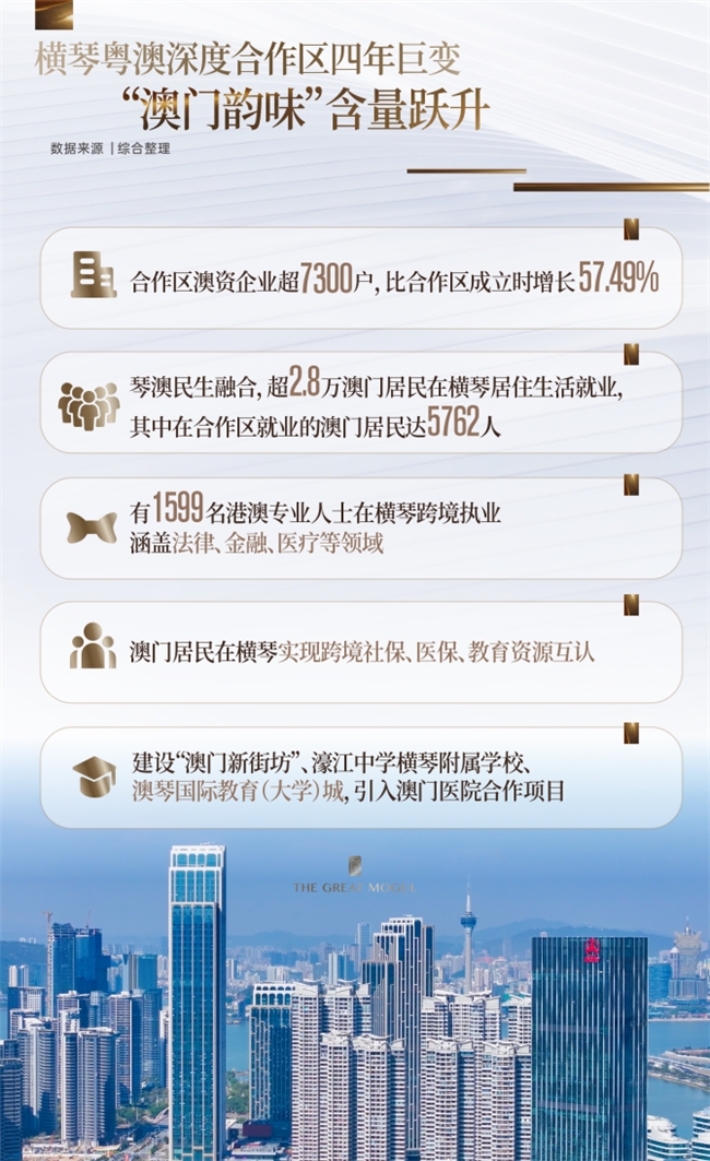 教育医疗资源加速集聚。澳门大学横琴新校区、澳琴国际教育(大学)城建设不断推进,国际化课程、高水平师资纷纷落地。