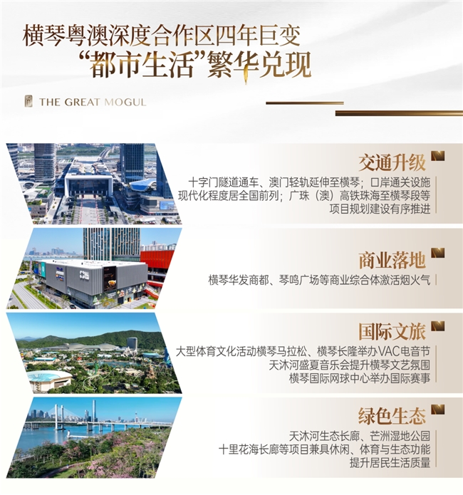 它打造了横琴国际网球中心、水上活动中心、横琴一中、容闳公学、勤政公寓等优质公共配套,以及横琴金融产业基地、横琴IFC、横琴跨境电商(华发)创新产业园等地标产业载体,为这座城市的功能完善与产业升级打下坚实基础。
