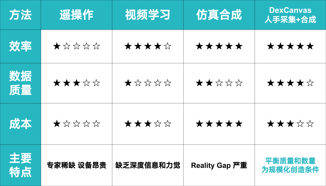 1.遥操作:虽能获取真实力控信息,但效率低、成本高,难以规模化;
