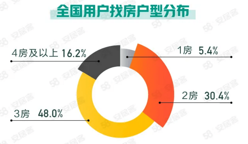 从户型来看,5月份三居室找房热度占比达48%,较4月份有所增长;2居室找房热度占比为30.4%;1居室找房热度有所下降。