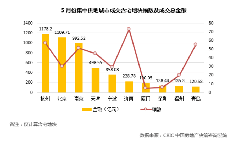 但总体来看,5月份土地市的城市分化依旧显著,北京、南京和杭州成“吸金大户”,成交金额均超990亿元。