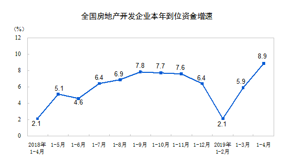 5月20日消息:近日,根据国家统计局发布的《2021年1—4月份全国房地产开发投资和销售情况》,1-4月,房地产开发企业到位资金6354.2亿元,同比增长35.2%;比2019年1-4月份增长21.1%,两年的平均增长率为10.1%。其中,国内贷款9043亿元,增长3.6%,比2019年1-4月份增长0.98个百分点;利用外资17亿元,下降28.3%,比2019年1-4月份下降50个百分点(名副其实的腰斩);自筹资金17167亿元,增长15.4%,比2019年1-4月份增长9.43个百分点;存贷款24362亿元,增长74.1%,比2019年1-4月份增长41.24个百分点;个人房贷10738亿元,增长41.3%,比2019年1-4月份增长33.71个百分点。