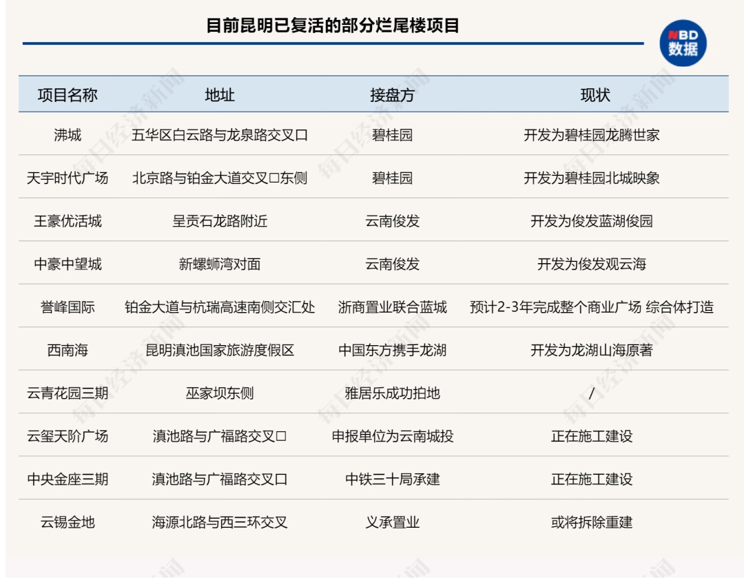 记者注意到,为解决烂尾楼问题,云南省住建厅早在2020年3月19日便发布了《关于全力清理整治烂尾楼的通知》,重拳清理整治烂尾楼。同年12月《昆明市人民政府办公室关于加强商品房预售资金监管工作的通知(试行)》发布,明确停工一年以上烂尾项目将被列为一级监管。今年3月31日,昆明市住建局发布《关于烂尾楼清理整治工作专项法律评估购买计划》,加速推进昆明烂尾楼清理整治工作。