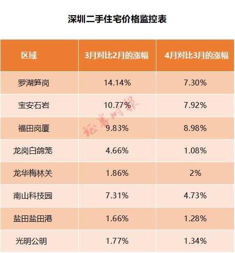 价格方面,乐友门店数据监测显示,截至5月5日,深圳二手房挂牌价格环比继续保持稳定,部分小区二手房挂牌价格呈上升趋势,但基本在合理范围内上下波动。记者发现,与3月和2月相比,4月和3月的增幅有所收窄。以下是深圳二手房上市价格发生显著变化的区域。