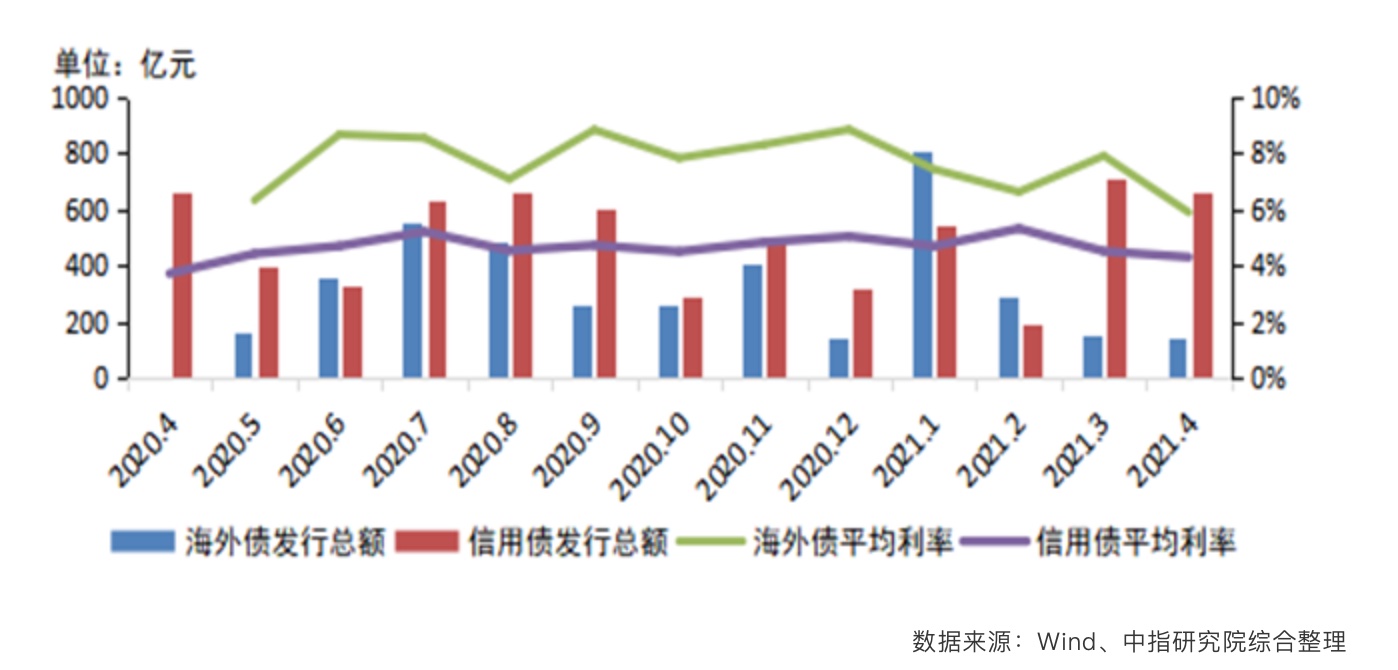 2020年-2021年4月房地产行业海外债、信用债发行情况