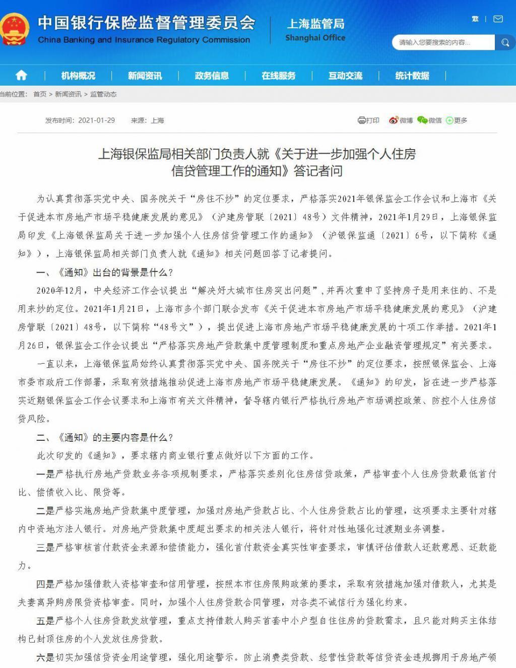上海银保监局官网截图