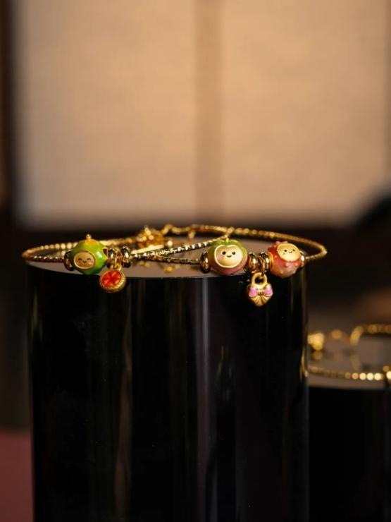 最后,是串珠品类的东西方演绎。一边是强调把玩与寓意的黄金文玩串珠,一边是更偏向搭配与个性表达的腕美转运珠。两种佩戴方式在同一生活方式场景中被演绎,让串珠从“单一功能型饰品”,延展为可以自由组合、反复佩戴的日常选择。