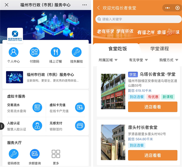 更为贴心的是,通联支付还考虑到了老年人的身体状况和节俭思想。一方面,通过打造线上长者食堂,以小程序为入口支持点单、代点单、送餐到家等功能,让身体欠佳的老人减少排队时间,也让行动不便的老人在家就能吃上美味饭菜;另一方面,通联支付联合当地银行,为银龄福卡(福州市民政局联合福建海峡银行推出的老年人专属定制卡片)配置和推荐银行卡营销活动,在特殊节日以及不定期推出随机减免活动,并为食堂配置自动核销设备,让老年人享受一站式优惠服务。