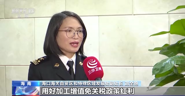 海口海关自贸区和特殊区域发展处副处长 刘全艳:为了帮助企业更好地用好加工增值免关税政策红利,我们加大企业信用培育力度,指导企业办理享惠主体备案、进出口通关手续,及时解决通关疑难问题,提升通关效率。