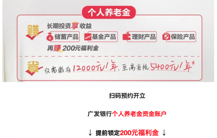 股份行中,广发银行扫码预约开立个人养老金资金账户, 提前锁定200元福利金;城商行中,北京银行(4.150,-0.01,-0.24%)个人养老金订阅有礼,最高88元微信立减金。