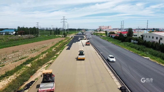 水稳基层施工开始以来,平度市交通基础设施建设指挥部精心策划,周密部署,项目部采取“5+2”“白+黑”的方式抢工大干,指挥部领导沉到施工一线,亲自调度,抢抓工期。同时,安排参建人员50余人,机械设备30多台,在摊铺过程中,指挥部责任人全程跟进、监管,技术人员全程旁站,随时记录、解决问题,严格把控施工质量及精度要求,确保保质保量完成摊铺施工。截至目前,该项目的路基、桥涵施工全部完成,基层施工全部完成,中下面层施工完成50%,路缘石安装50%。