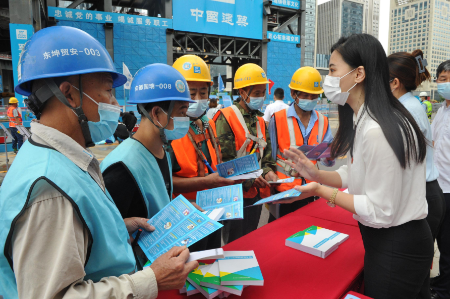 北京市人力资源和社会保障局、丰台区人力资源和社会保障局共同走进国家金融信息大厦工程项目工地,进行工伤保险政策宣传。