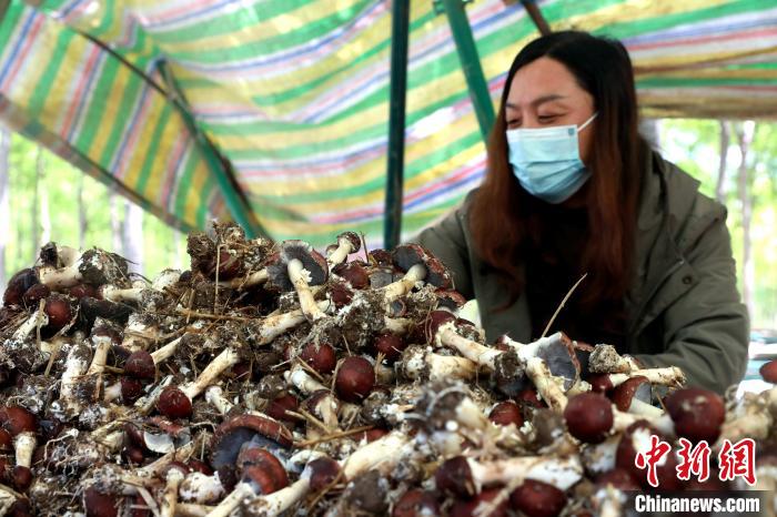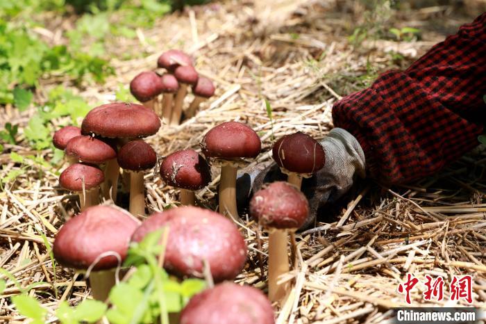 5月19日电 “松茸是一种高端野生食用菌,浑身是宝,富含氨基酸和多种微量元素,营养丰富,味道鲜美。”在河北邢台市任泽区岭寺村林下松茸种植基地,负责人杜一边指挥工人采摘,一边介绍。