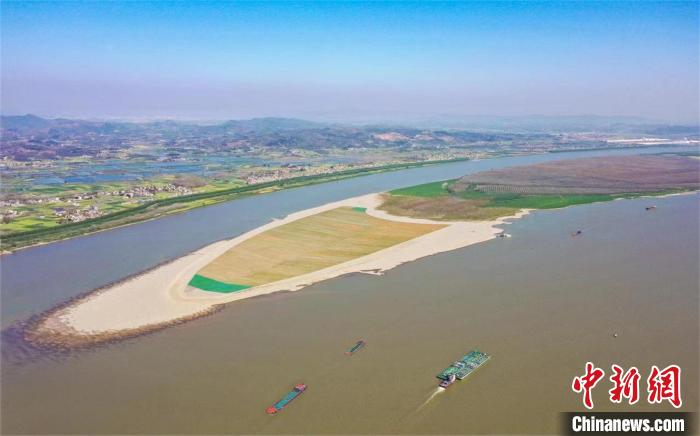 4月26日电 春天到了,武汉至安庆6米深航道整治工程第五标段老虎滩生态滩得到巩固,碧水青山岸,河流秀丽,沙鸥季翔。整治工程的生态建设成效初显。