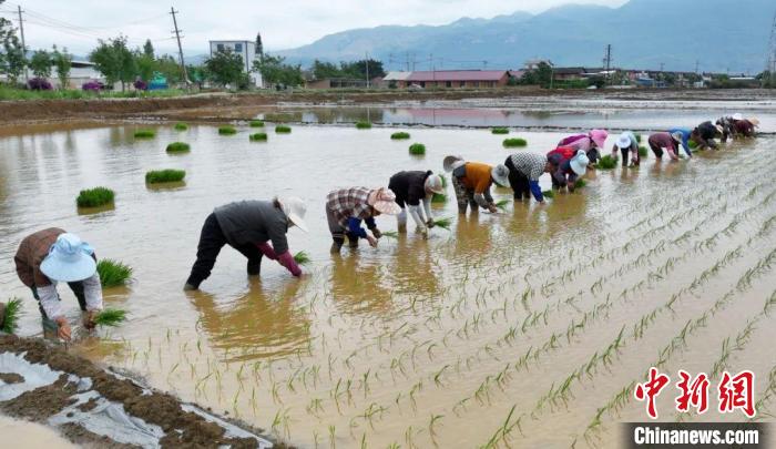 4月19日电 运秧、抛秧、移栽……随着各项工作的有序进行,袁隆平超级杂交稻蒙自示范基地近日进行了秧苗移栽,继续向亩产1200公斤的目标冲刺。