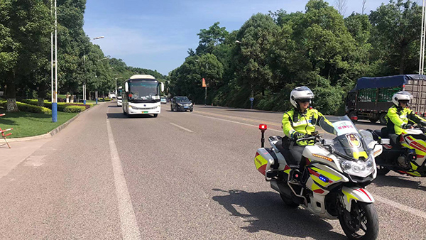 警察在考点前进行了检查。此图由重庆市公安局公安总队提供