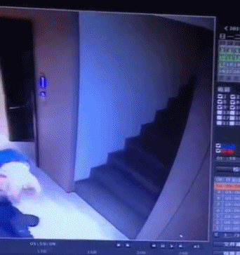 之后一个粉色头发女生突然跌入镜头,看着似乎想往楼梯方向挣扎,但被男子拽起身半扶半推弄进了屋子。