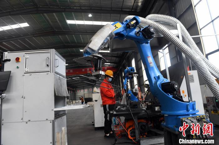 记者在现场看到,5700平方米的生产车间安静、干净、宽敞、明亮,12名施工人员正在操作电脑和智能机械臂进行抱箍加固、桁架加固、混凝土模板等轨枕生产作业。在磨削车间,智能六轴机械臂携带磨头对模具内腔进行精确磨削;两个智能机器人相互协作,流畅地完成弯曲、焊接、堆叠等过程。