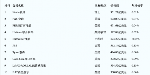 2021年初,欧分析企业管理咨询有限公司发布了《全球50强快消品公司》,以2019年全球快消品公司销售收入排名为指标,最终评选出全球50强快消品公司。在这个排名中,国际顶级消费品巨头要么宣布涨价,要么正在涨价的路上。