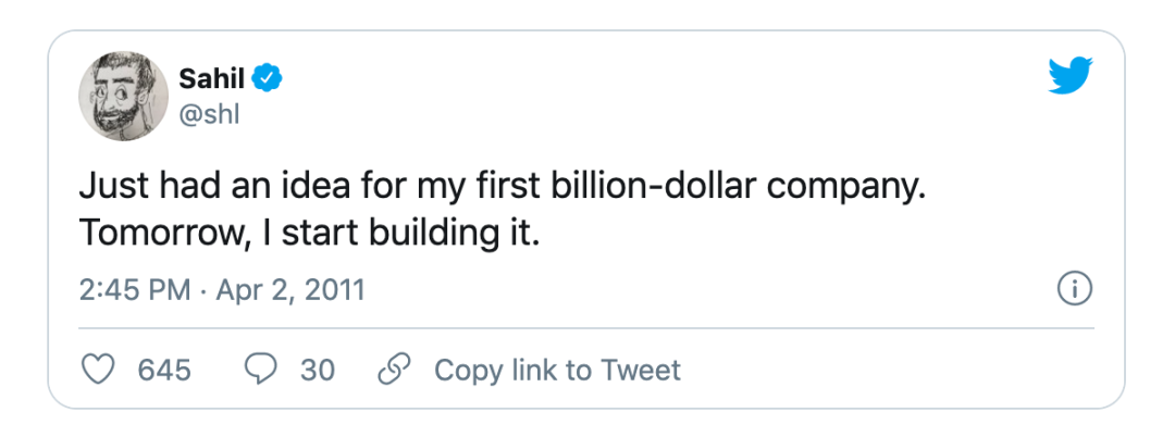 “我突然有了一个建立十亿美元公司的想法,明天就开始实施。”