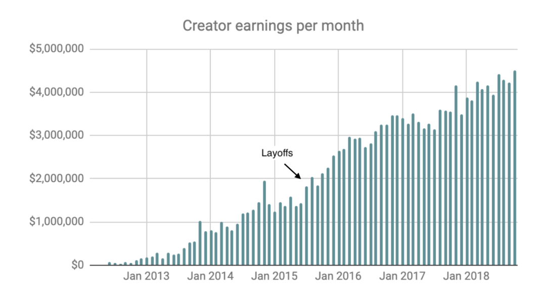 2018 年 4 月 ,Gumroad 甚至开始公开自己的财务状况。通常来说,对于那些需要融资、招聘、竞争市场的公司来说,这不现实,但因为 Gumroad 不存在任何一项以上需求,它大大方方地公开了。