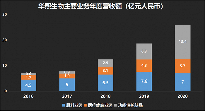 与此相反,尽管在服务科技创新企业的科创板上市,但华熙生物正在向依赖C端品牌的消费企业靠拢。