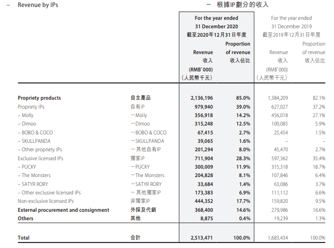 泡泡玛特IP收入占比,图源泡泡玛特2020年报