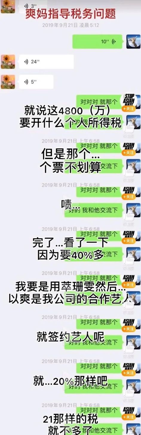 从张恒和郑爽妈妈的截图看来,郑爽妈妈觉得45%税率太高了,让郑爽以新沂萃珊雯文化有限公司签约艺人的身份来逃避个人所得税,最后只交20%的税。