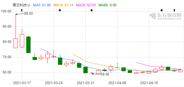 国内另一家云公司青云科技,准备正式登陆科创版已经一年多了。但其股价自发行以来一直在持续下跌,从最高价98元/股跌至4月23日的61.7元/股,市值蒸发了37%。