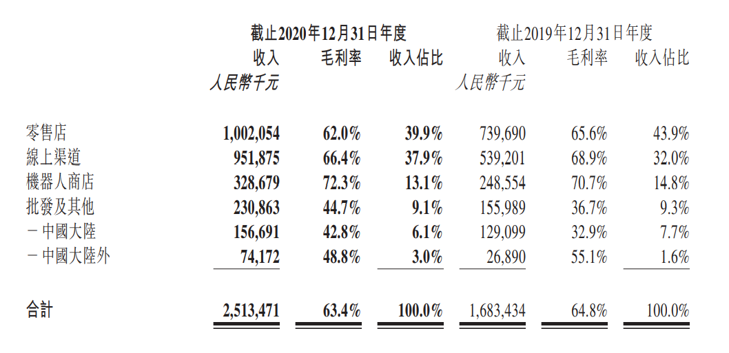 相比于线上的高增长,线下的收入增长并不理想。2020年新店增加66.7%,扩张迅速。但零售店的营收仅增长35.5%,其中一线城市机器人店增长近50%,但产生的总营收却从2019年的1.2亿元下降到2020年的1.19亿元。试图扩张的线下机器人店可能方向不对。