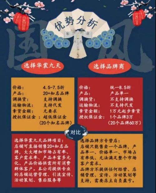 从招商手册看,像华裳九天,南笙九歌这种应该只是做了多个品牌的代理,再把这些品牌放到一家实体店售卖的汉服店,又会有多少人会冲着这些所谓品牌方买账呢?