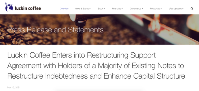 近日,瑞幸咖啡宣布已与重要债权人达成重组支持协议。