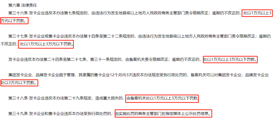 “处罚太轻,震慑力太弱,对于商家而言无意隔靴挠痒。”王伟也赞同“立法关键在于落实”的观点,但他还觉得惩罚力度要更严厉些。以《单用途商业预付卡管理办法(试行)》所示的法律责任,处罚多以罚金为主,且多为3万元以下的小额罚款,“商家所承受的代价太小了。”