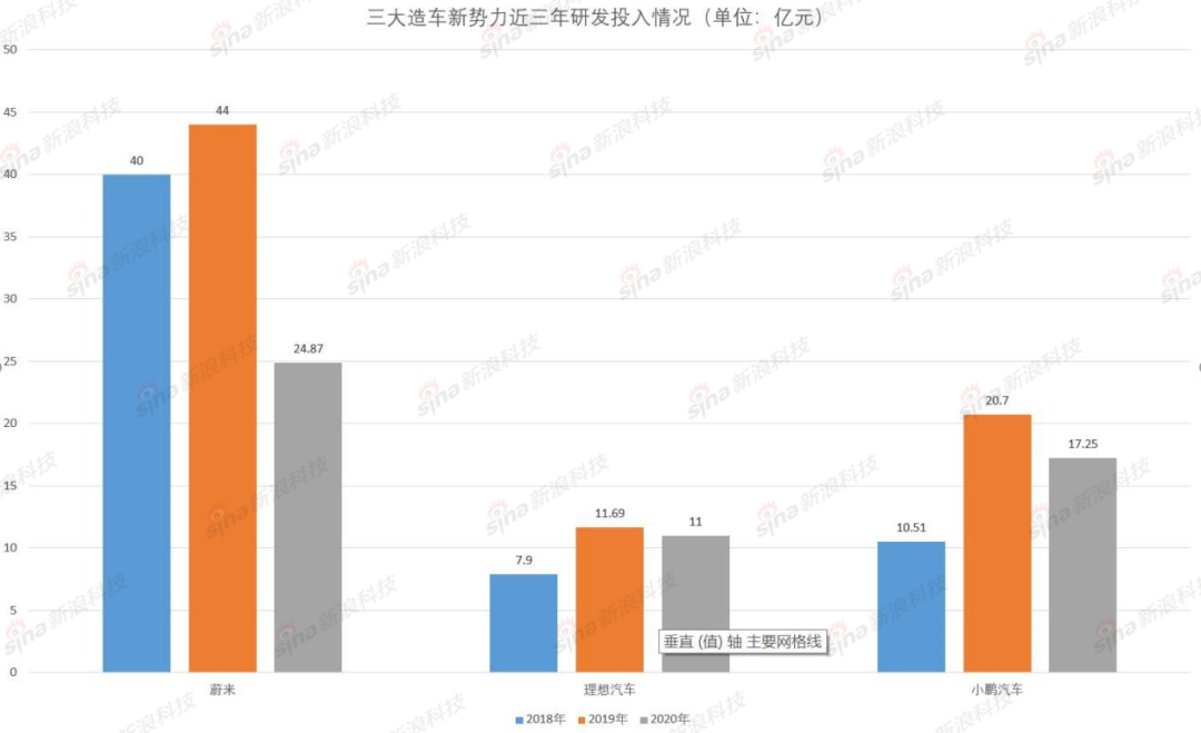 2020年是新能源最受关注的一年,但三大造车新势力的研发投入均有所减少:蔚来在2020年的研发支出共计约为24.87亿元,同比下降43.8%;理想汽车在2020年的研发支出约为11亿元,比较2019年的11.7亿元微降6%;2020年小鹏汽车的研发支出约为17.25亿元,2019年为20.7亿元,降幅为16.6%。