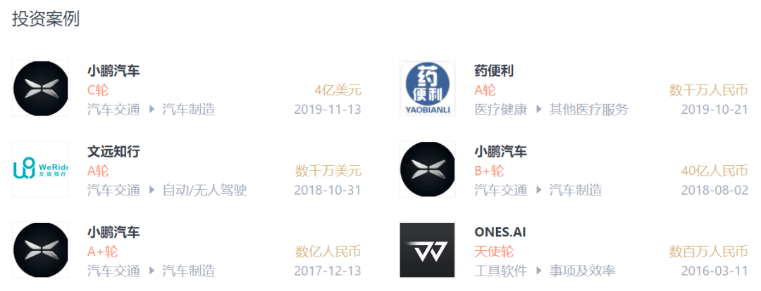 当然,小鹏汽车本身就可以作为其天使投资的最直接代表案例。