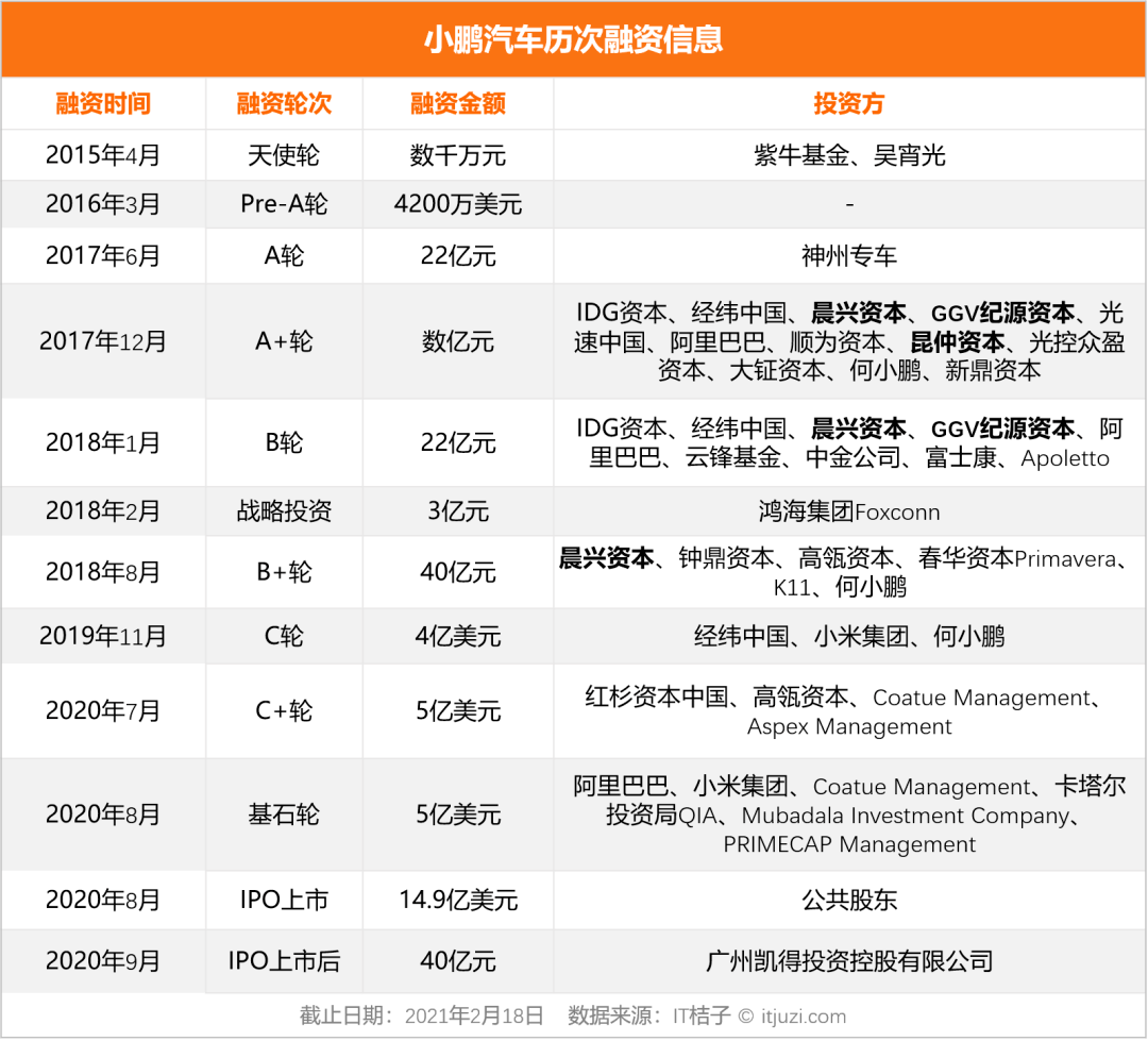 从成立开始到拿到上市前基石轮,小鹏汽车在一级市场获得大概 236 亿元的融资。