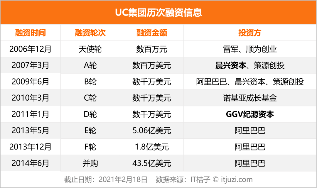 2007年3月,UC从晨兴资本和策源创投获得了数百万美元的A系列融资;之后,于永福出任CEO,何退居幕后担任产品总裁。两年后,阿里入股UC,最后一轮的投资人跟进;随后几年,阿里又给UC加了两轮融资。