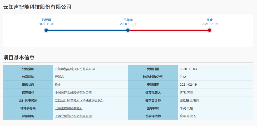 据投资消息,2月19日,上交所发布《关于终止对云知声智能科技股份有限公司首次公开发行股票并在科创板上市审核的决定》,提及云之盛自愿撤回科技创新板申请。