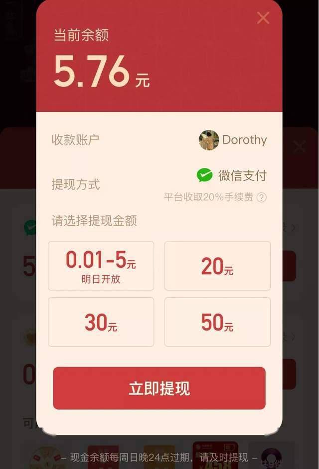 虽然拼多多路过春晚,但瓜分28亿红包的口号是几家大厂中最尴尬的。参与是社会互动的形式。朋友可以面对面握手分享红包,单个红包最高可达50元。但提现方面,只能微信支付,明确收取20%手续费。