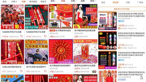电商平台上也发生了类似的场景。淘宝特别版已经卖了16.8元的电子烟花。1688年搜索电子烟花,头号厂商营业额超过111万。喜庆店里藏了很多电子烟花,也说明“拼了十万块”。