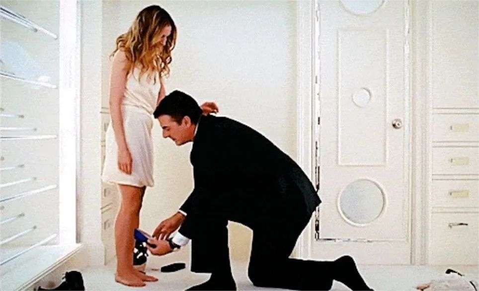 《欲望都市》年,凯莉拥有了100双这样的高跟鞋,于是她的男朋友Big先生用一双丝绸面上有水晶方形纽扣的MB蓝色高跟鞋成功求婚。后来,在韩剧《蓝色大海的传说》中,全智贤的脚上穿的也是同样的绿色高跟鞋,后来这款MB高跟鞋卖完了。2017年,1993年出生的米歇尔在纽约街头买了红色版。