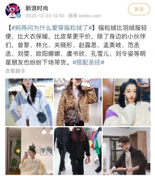 数据显示,微博上经常提到的摇粒绒周围的词,除了温暖、时尚等形容词外,还有各种明星的名字。从最近人气暴涨的爱豆,到流量小生,时尚明星等。摇粒绒可以说是一扫而空。