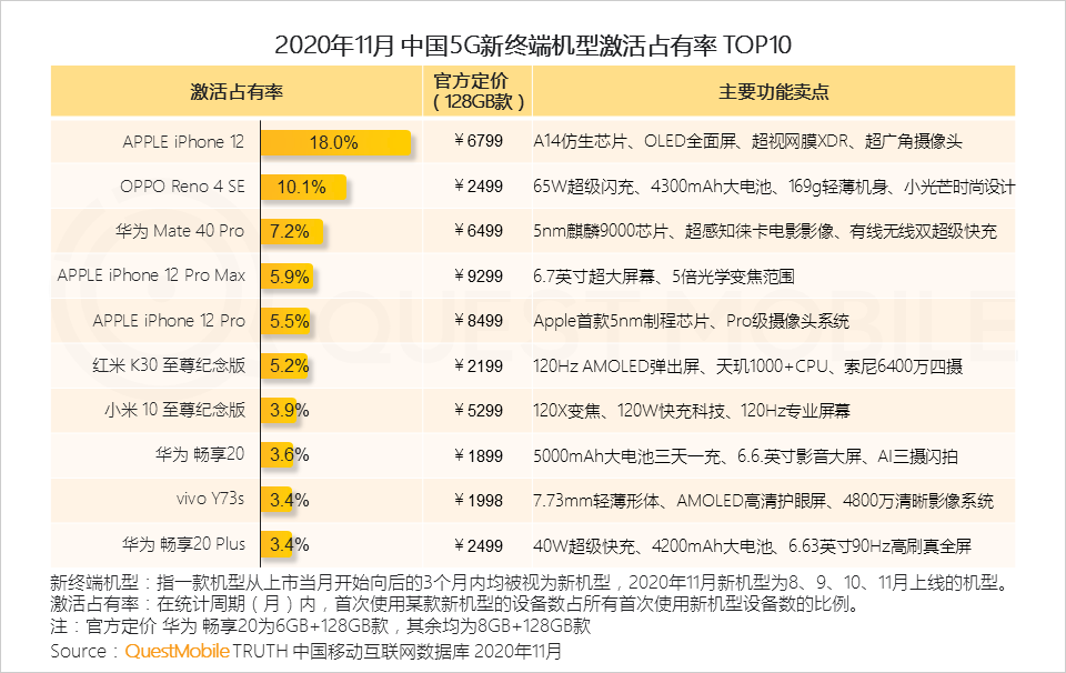 11月5G新机型激活量突破2200万部,TOP10机型国产品牌占据七席