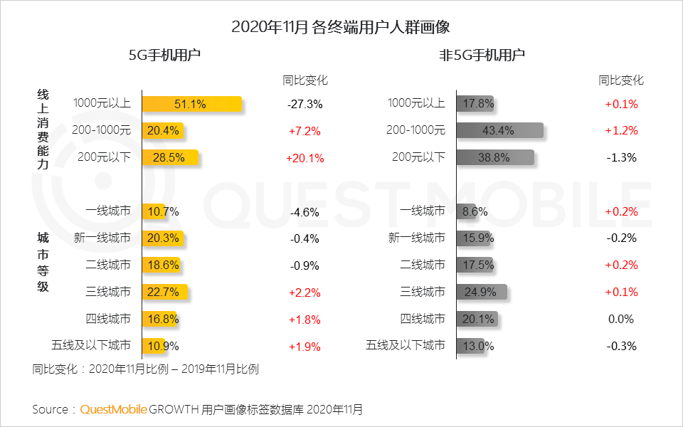 3.随着群体规模的不断扩大,5G手机用户在消费层面和城市层面进一步下沉,下沉市场的快速崛起已经出现在5G手机市场
