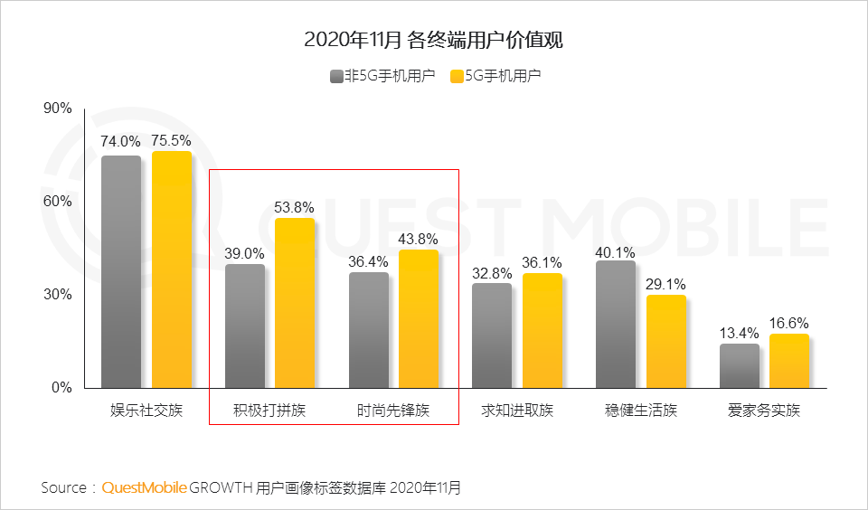 5.5G手机用户作为新一代手机的早期消费者,在攻击性、时尚性和创新性方面表现突出,在大众消费群体中具有重要的市场导向价值