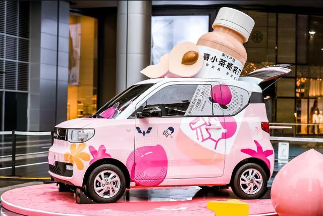7月,五菱再次高调跨界,推出限量版“五菱螺蛳粉”。五菱汽车关伟也发布了“热点”微博:#柳州螺蛳粉年产值近50亿元#下半年收缩。产值,#五菱螺蛳粉#任中任重道远!”除了螺蛳粉,还有hi-tea。8月,五菱手捧hi-tea举行“灵感碰撞派对”,五菱将洪光MINI EV漆成类似hi-tea瓶的粉色。