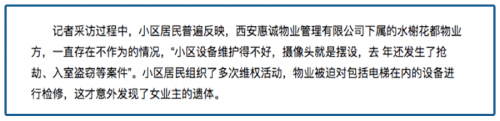 在Xi的某个地区,一台有故障的电梯困住了人们,30天内没有人发现它。居民顺便反映了物业的其他问题,也不少。